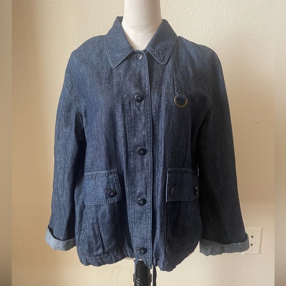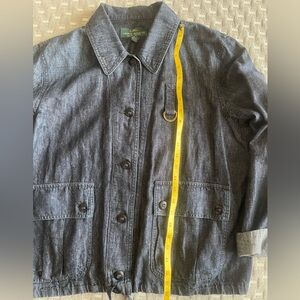 Ralph Lauren Jeans Co. Soft Dark Blue Denim (Cotton-Linen Blend) Jacket with Drawstring Hem & Logo Accent.