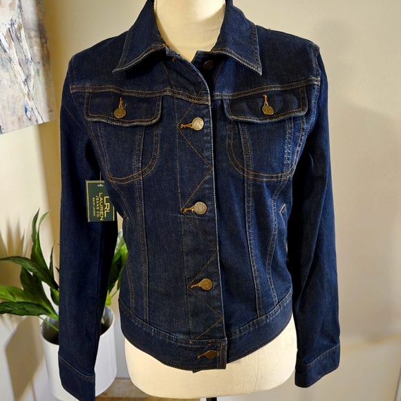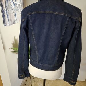 Classic denim jacket. Button-up front. Stylish and versatile.