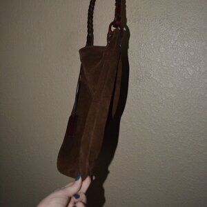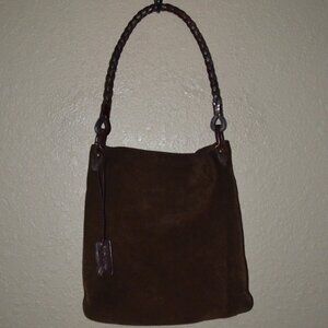 Ralph Lauren Dark Brown Suede Messenger Shoulder Handbag