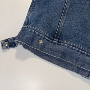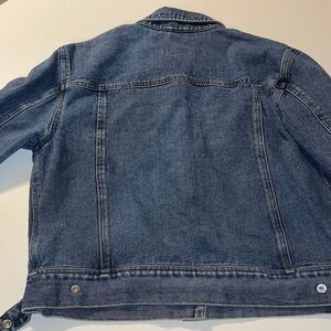 Stylish denim jacket with button front. Features chest pockets and classic design. Perfect for casual wear. Button at the bottom of the back of the jacket removed as pictured easy fix for an otherwise fantastic piece.