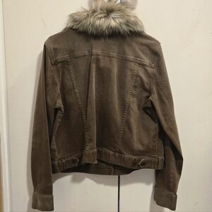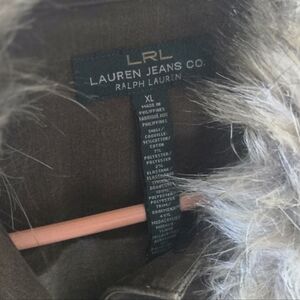 Ralph Lauren women's brown jean jacket with removable faux fur hood size XL