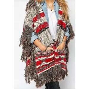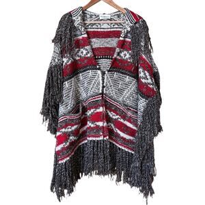 Ralph Lauren Denim & Supply Fringed Hooded Poncho OS Southwest Aztec Wool