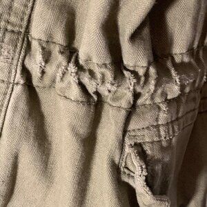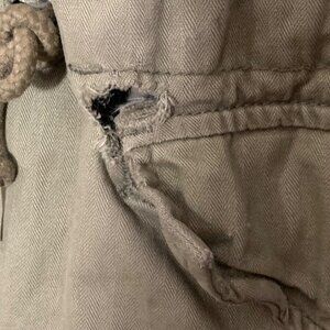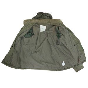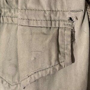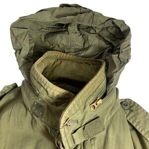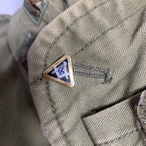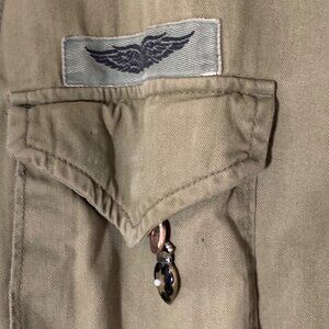 One patch has lifted from glue but is still attached, last photo. Ring around the collar. Holes near pockets. Black and green marks on jacket shown in close up photos. Shoulder to shoulder: 20", Armpit to armpit: 24", Shoulder to bottom: 27.5", Sleeve length: 27".