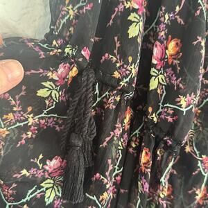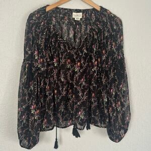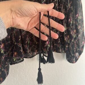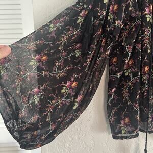 Ralph Lauren Denim & Supply Sheer Boho Peasant Top Black Floral Long Sleeve Fall