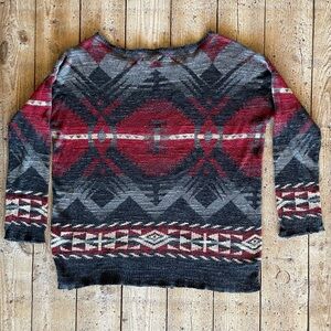Ralph Lauren Denim & Supply Southwest Red Grey Aztec Light Loose Sweater Large