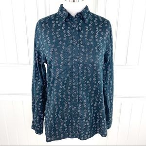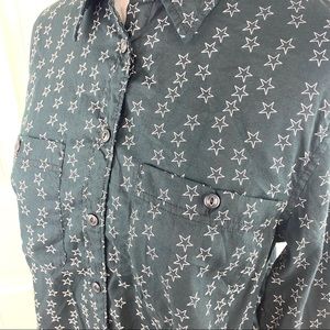 Denim & Supply by Ralph Lauren black with cream star print button down long sleeve shirt. Button chest pockets.