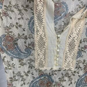 Ralph Lauren Denim & Supply Top Womens Medium Cream Blue Floral Sheer Lace Y2K