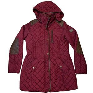 Ralph Lauren Diamond Quilted Jacket Red Faux Leather Trim Women's Size S