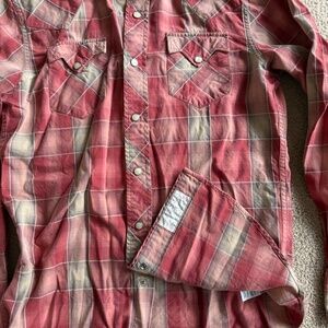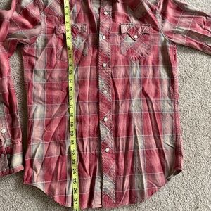 Double RL Red Beige Plaid Western Pearl Snap Cowboy Shirt Size Sm.