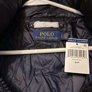 Ralph Lauren Down Hooded Navy Winter Puffer Coat Parka Sz S/P RL Crest $398