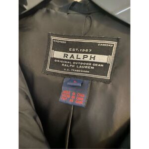 Black Puffer jacket size L. Slide zippered pocket and hood with drawstring. Very clean.