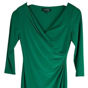 Ralph Lauren Dress 0P 0 Petite XSP Green Ruched Bodycon Stretch Elegant Cocktail