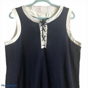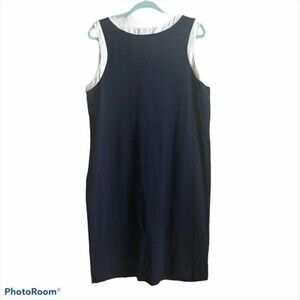 Lauren by Ralph Lauren heavier material dress, sleeveless, scoop neckline with self tie, black sheath/shirt dress with white piping. Feels great on.