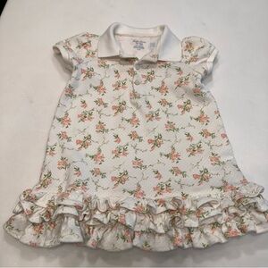 Ralph Lauren Dress Girls 18M White w/ Pink Floral Collared Ruffle Short Sleeve