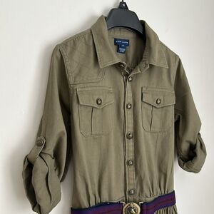 Ralph Lauren Dress Girls Size 14 Khaki Button Front Belted Chino Shirtdress
