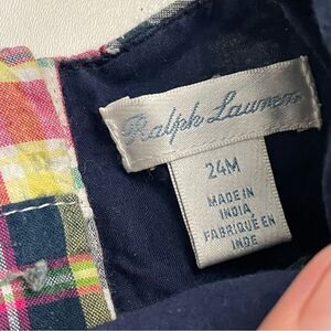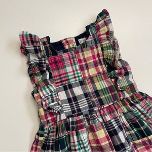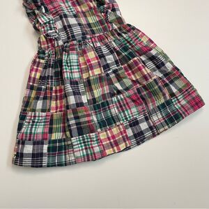 Ralph Lauren Dress Madras Plaid Ruffle Lined Cotton Sleeveless Blue Pink Green