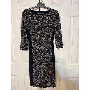 Ralph Lauren Dress Navy Blue Brown 2 XS Washable Stretch Sheath Career Church