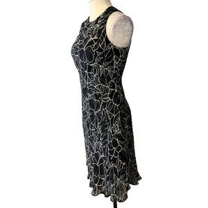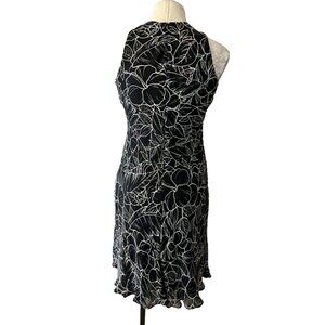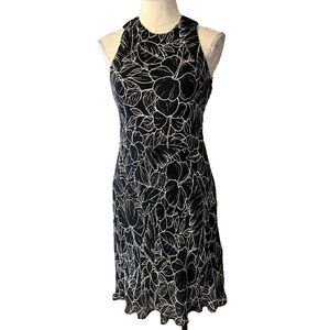 Ralph Lauren Dress PS Petite Small SILK A Line Black Ivory Crew Neck Sleeveless