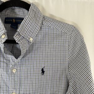 Ralph Lauren Dress Shirt Boy medium 10 12 White Blue Plaid Button Up Long Sleeve