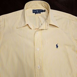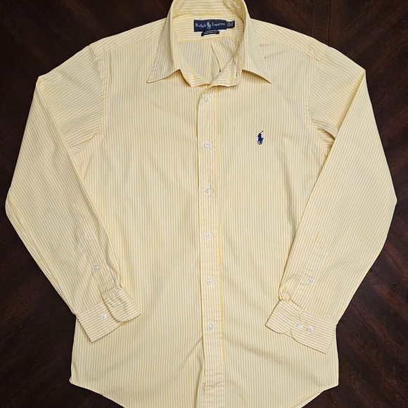 Ralph Lauren Dress Shirt Classic Fit Medium Yellow & White Stripes