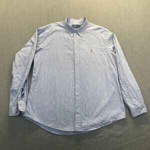 Ralph Lauren Dress Shirt Mens Size XXLarge Blue Striped Long Sleeve Button Up