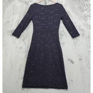 Ralph Lauren Dress Size 6 Blue Sequin Lace Cowl Neck 3/4 Sleeves Knee Length