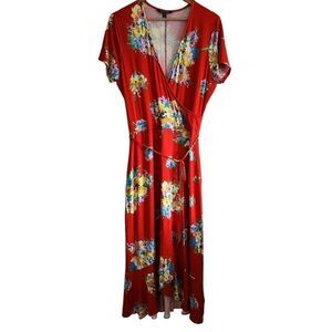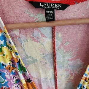 Ralph Lauren Dress Womens 1X Plus Floral A Line Ruffle Tie Black Label Red