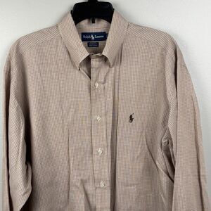 Ralph Lauren Dress shirt Men 16 1/2 - 32/33 Brown XStripe Cotton Oxford Yarmouth