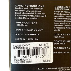Ralph Lauren Dunham Sateen Mist Blue Pillowcases Set of 2 Standard Cotton NEW