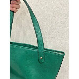 Ralph Lauren Embossed Leather Tote Bag Classic Green Shoulder Purse Handbag
