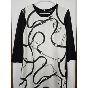 Ralph Lauren Equestrian-Inspired Print Knee Length Shirt Dress. Size Medium. Straight fit. Back zipper. Half Sleeves. Great condition. Polyester/Viscose/Nylon/Elastane.