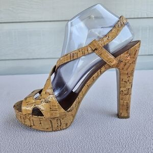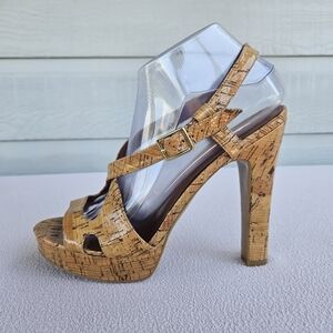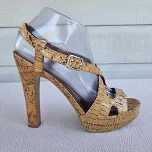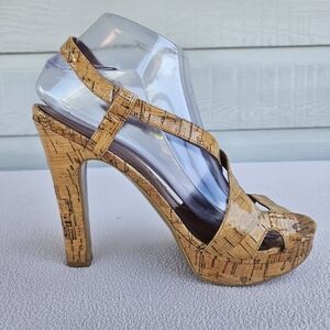 Ralph Lauren Filara Natural Glazed Cork Platform Heeled Sandals Women SZ 9B