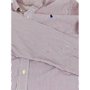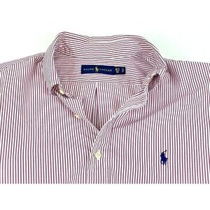 Ralph Lauren Fitted Button Down Shirt Red & Navy Blue Pinstripe Men's 16.5 34/35