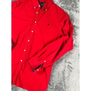 Ralph Lauren Flannel Lined Button Down Shirt Mens XL Red Plaid Trim