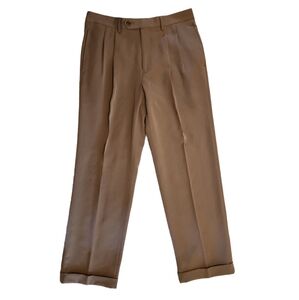 These pants are in good co condition, no stains or holes. These are a dark khaki color, sized 33w x 30l but approximate measurements are below