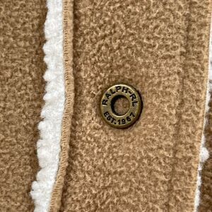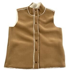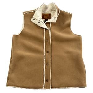 Ralph Lauren Fleece Vest Womens Medium Tan Sherpa Snap Front Wild Frontier