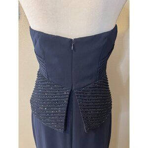 Ralph Lauren Formal Dress 12 Navy Blue Corset Beaded Wedding Cruise Party