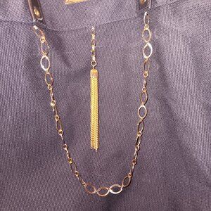 Ralph Lauren Fragrances chain and tassel on cotton canvas extra large shoulder tote bag purse. Pre-owned.
