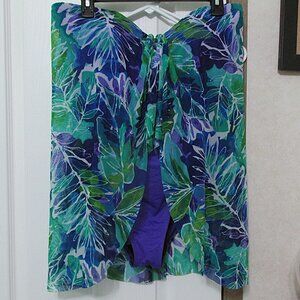 Full coverage, strapless, bandeau neckline, built in cups and flowing overlay. Lightly worn, in very good condition and from smoke free home.