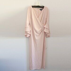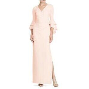 Ralph Lauren Full Length Formal Gown Blush Ruffled Sleeves, Size 6