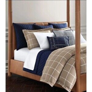 Ralph Lauren Full Queen Modern Equestrian Windowpane Duvet Cover Cotton Cashmere