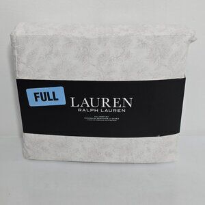 Ralph Lauren Full Sheet Set Floral 4pc Gray Grey White 100% Cotton Deep Fitted