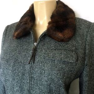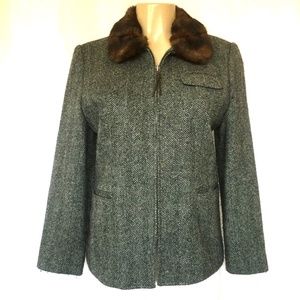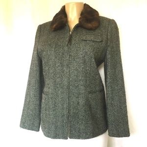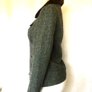 Ralph Lauren Fur Collar Blazer Jacket Gray Wool 8
