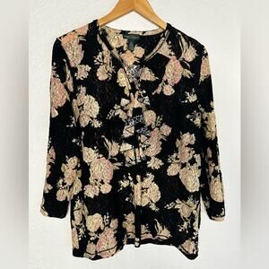Ralph Lauren Long Sleeve Black Rose Top Blouse