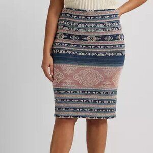 Ralph Lauren Geo Motif Pencil Skirt Women's Plus Size 3X Linen Blend
