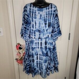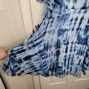 Ralph Lauren Georgette Boat Neck Ruffle Short Sleeve Tie Dye A-line dress 16