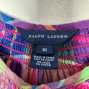 Ralph Lauren Girls Dress Size 10 Plaid Colorful Cotton Polo Pony