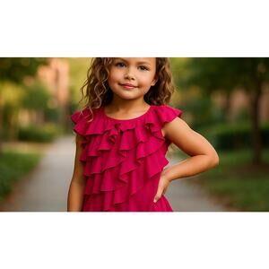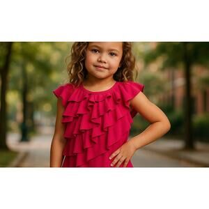 Ralph Lauren Girls Dress Size 4 4T Ruffle Sleeve Stretchy Hot Pink Fuchsia