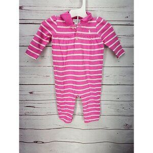 Ralph Lauren Girls Pink Striped Polo Collared Coverall Outfit Size 9M 9 months