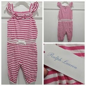 Ralph Lauren Girls Striped Ruffled Sleeveless One Piece Romper